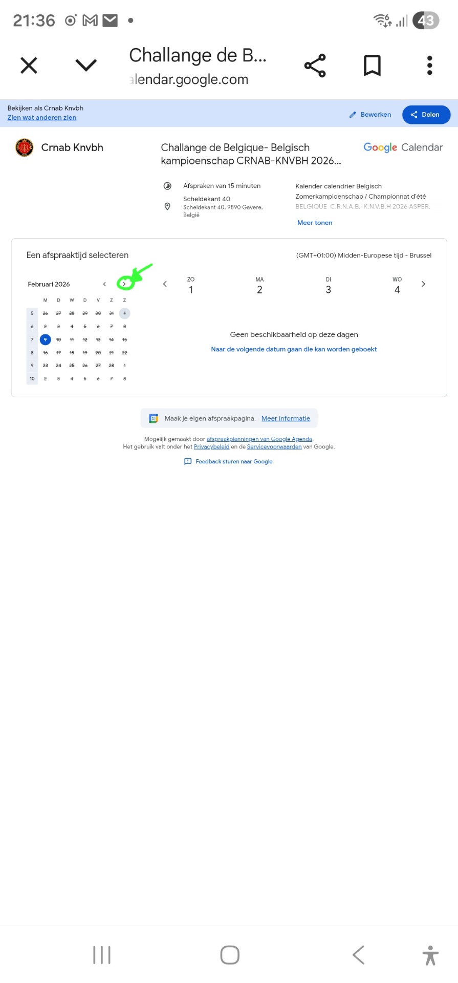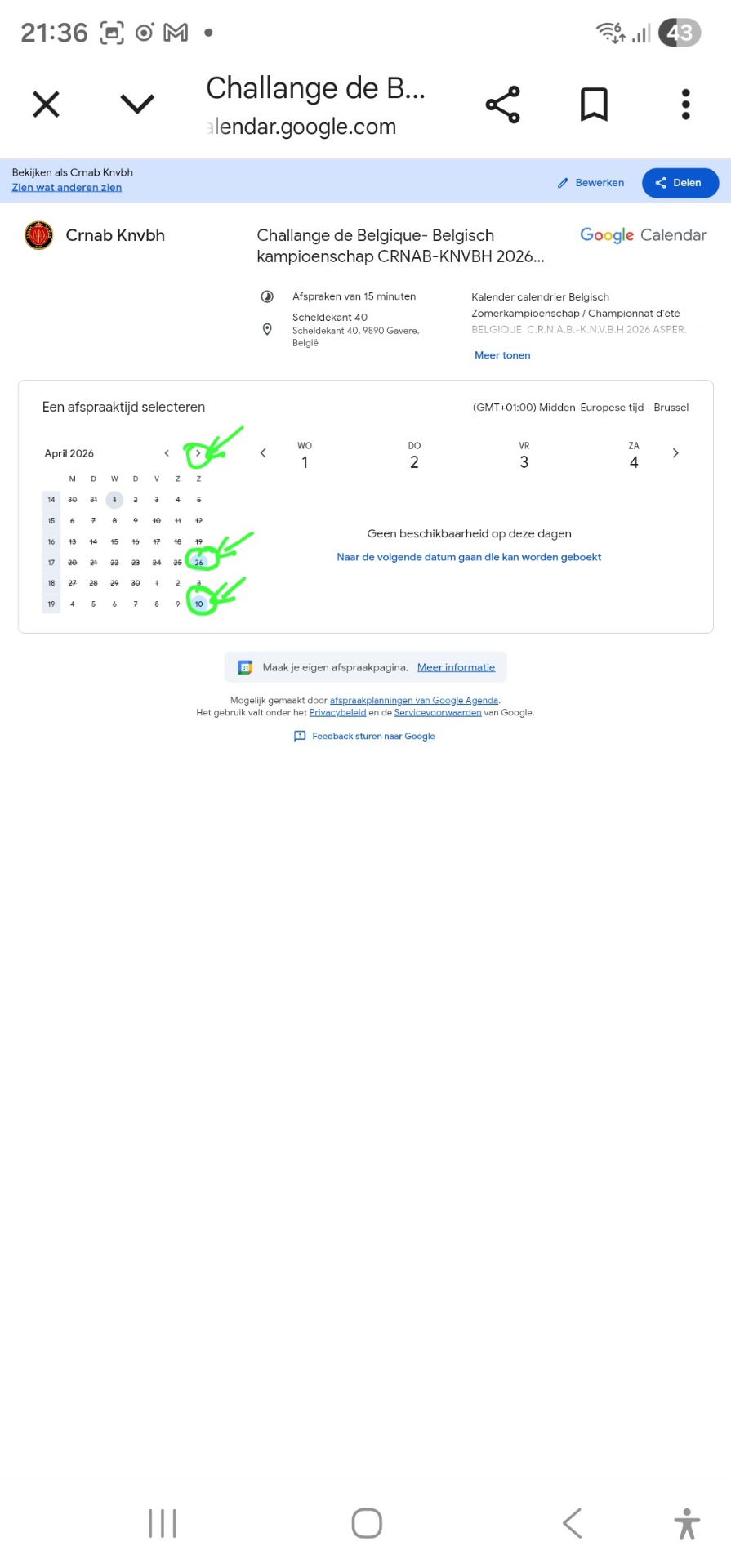 Klik op de gewenste datum en scroll naar beneden / Cliquez sur la date souhaitée et faites défiler vers le bas
