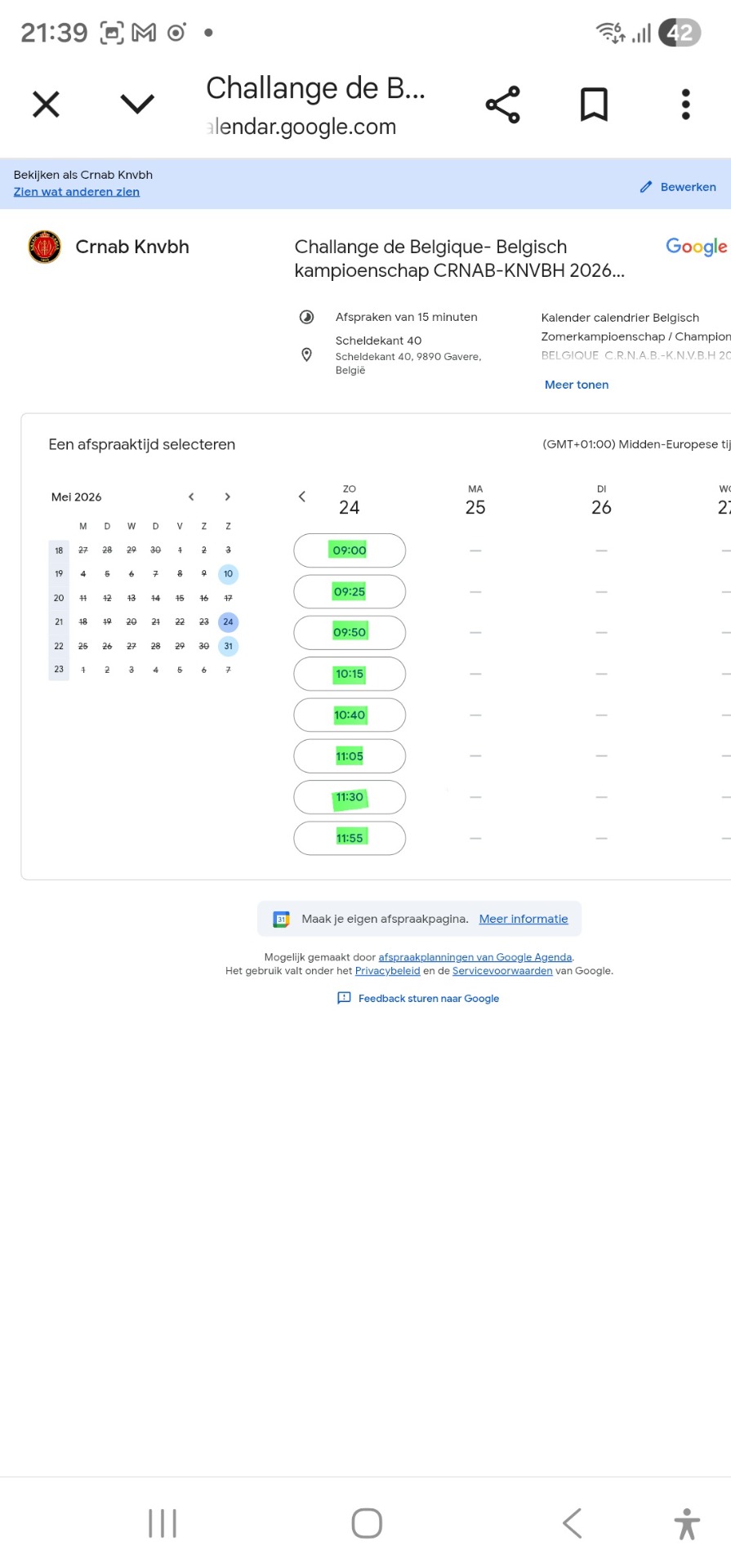 Beste schuttersvrienden hieronder vinden jullie de link naar onder online boekingsagenda voor het jaarlijks zomerkampioenschap van de C.R.N.A.B.-K.N.V.B.H. 2026.