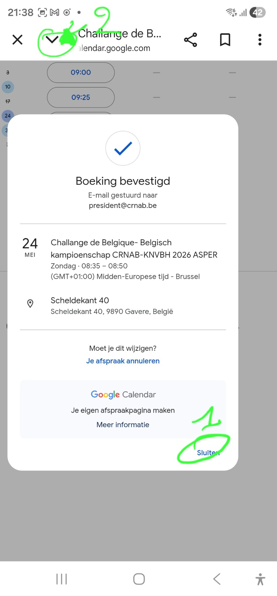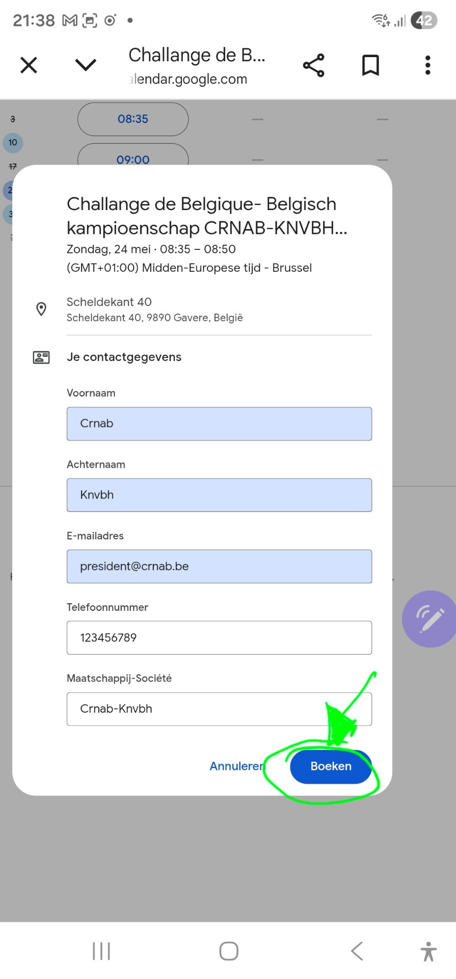 Bevestig door te klikken op boeken / Confirmez en cliquant sur Boeken