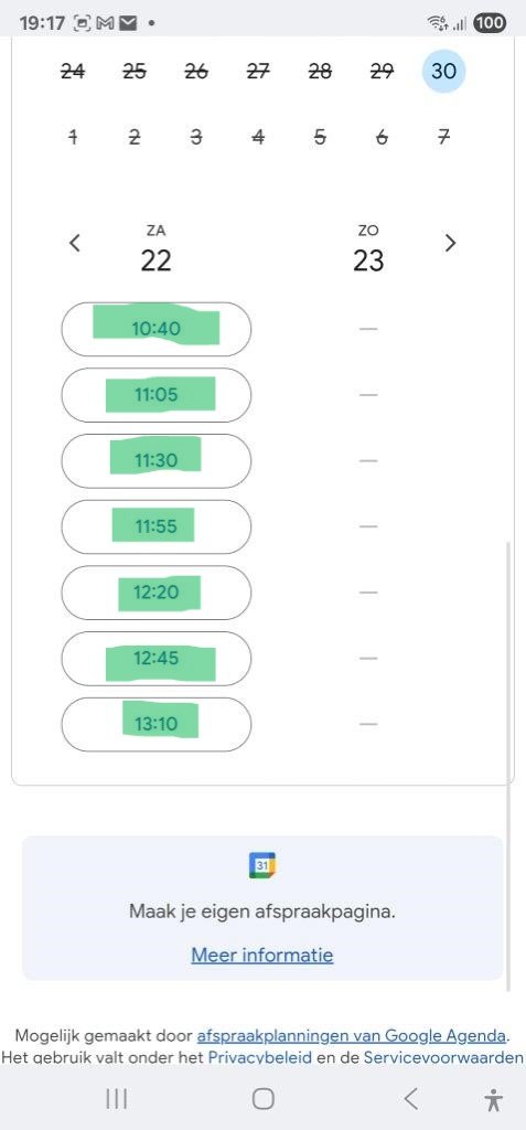 Klik op de gewenste datum en scroll naar beneden / Cliquez sur la date souhaitée et faites défiler vers le bas