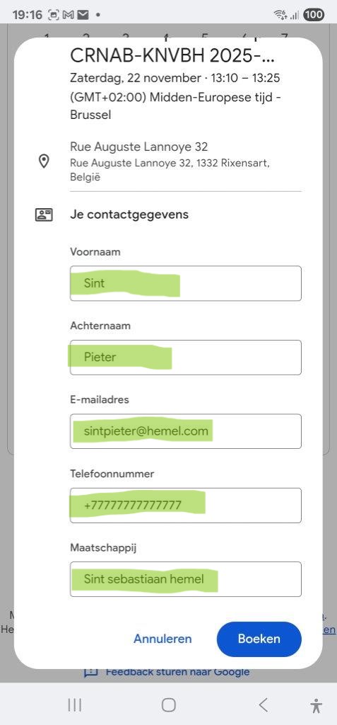 U zal na boeking een mail ontvangen dat u gewenste datum geregistreerd is, LET OP UW DATUM EN UUR STAAT PAS VAST NA BETALING VAN 20€ PER PLOEG EN BEVESTIGINGSMAIL VAN HET BESTUUR.